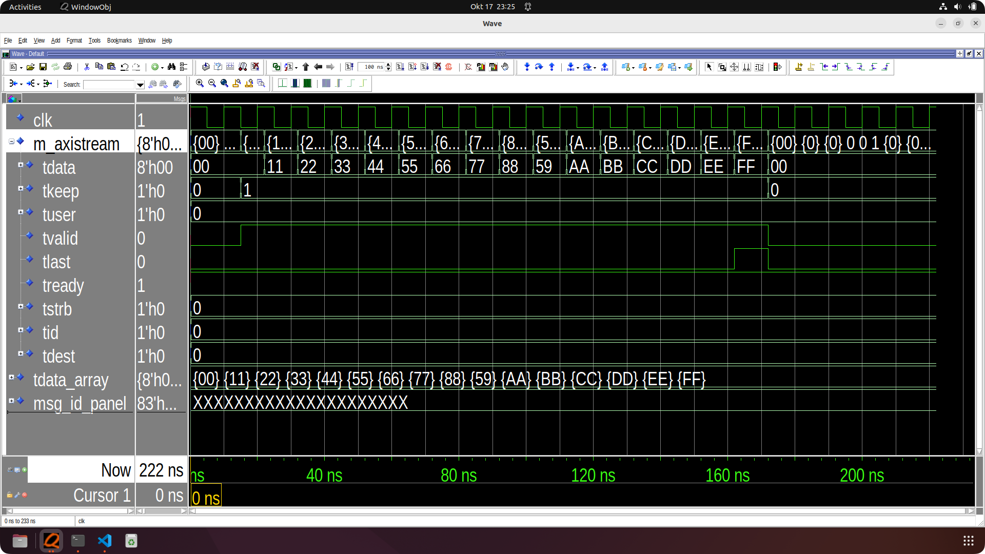 # UVVM: ID_PACKET_DATA 222.0 ns STIMULI Process axistream_transmit(16 words[8b])=> Tx x"66", byte# 6. 'Send AXI4-Stream data'