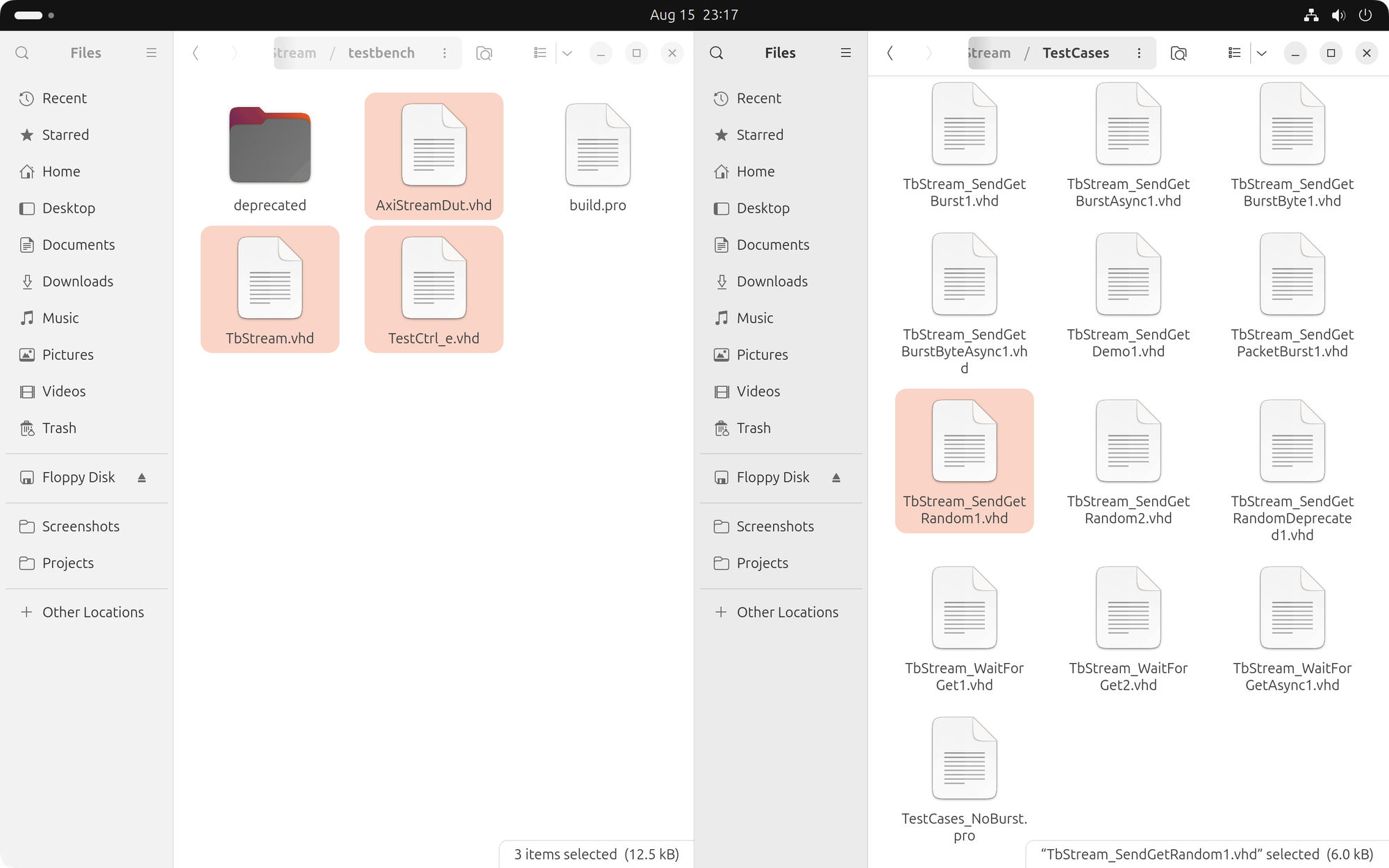 For our test, we selected the 'SendGetRandom1' AXI-Stream testcase included in the OSVVM code.