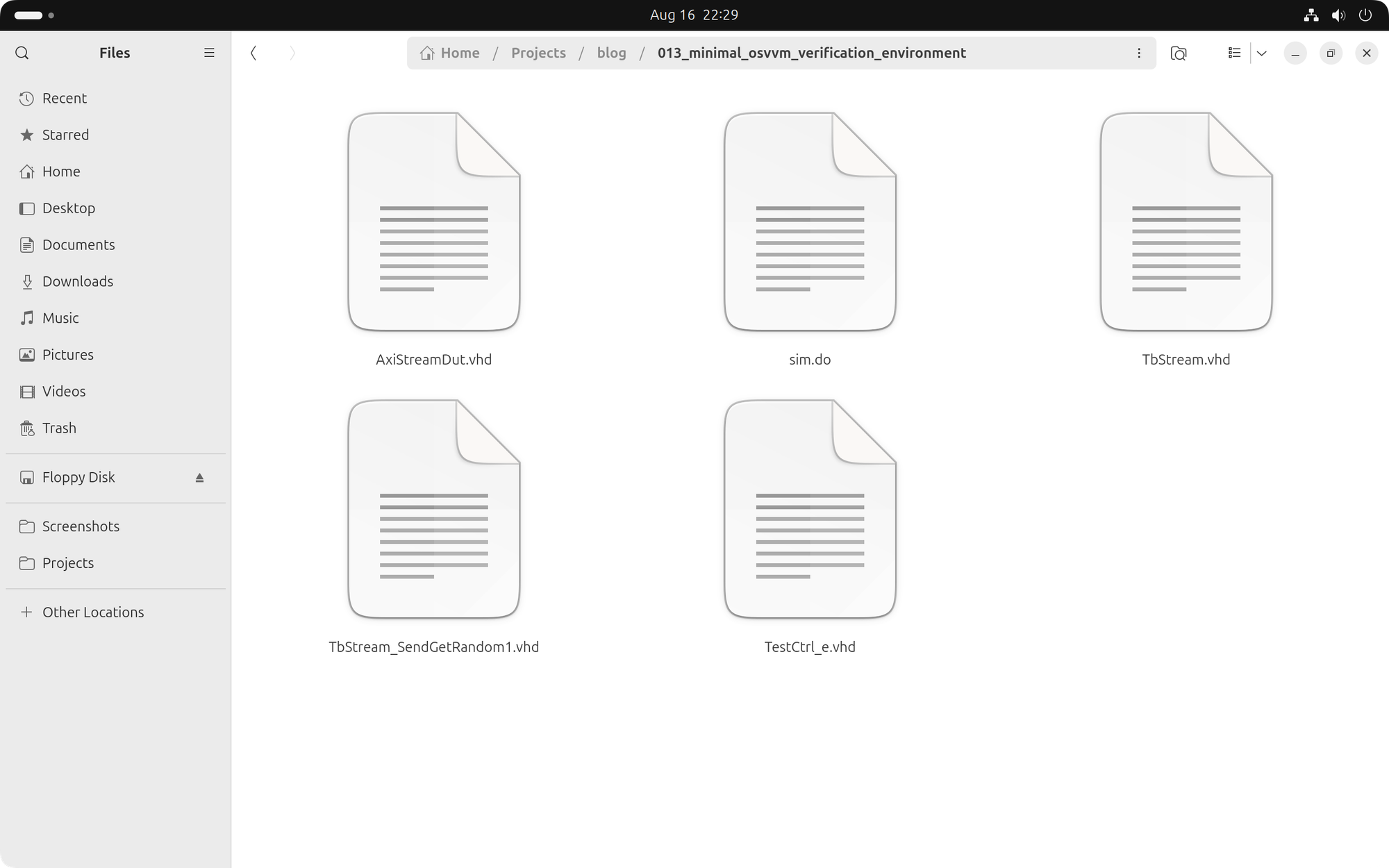 Next, we will create a local copy of the simulation files for an existing testcase. We will use the AXI-Stream 'SendGetRandom1' testcase. We need four files, all of which are included in the OSVVM sources: